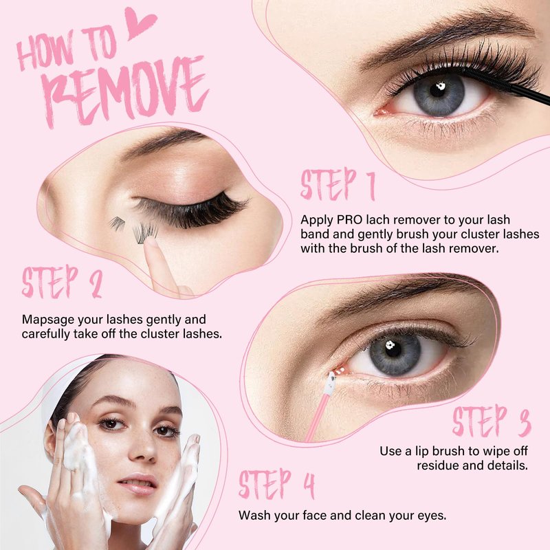 - Easy To Use:PRO LashBeauty Lash Remover is very easy to use, brush the remover oil onto the lashes and gently massage until the cluster lashes come off.Use the brush to clean delicate areas and then rinse your eyes