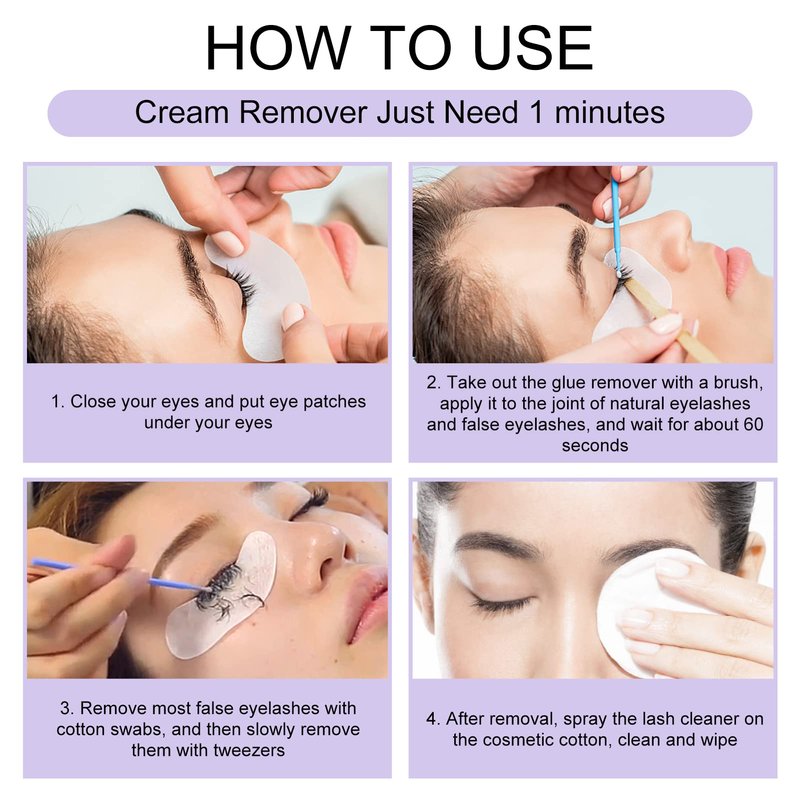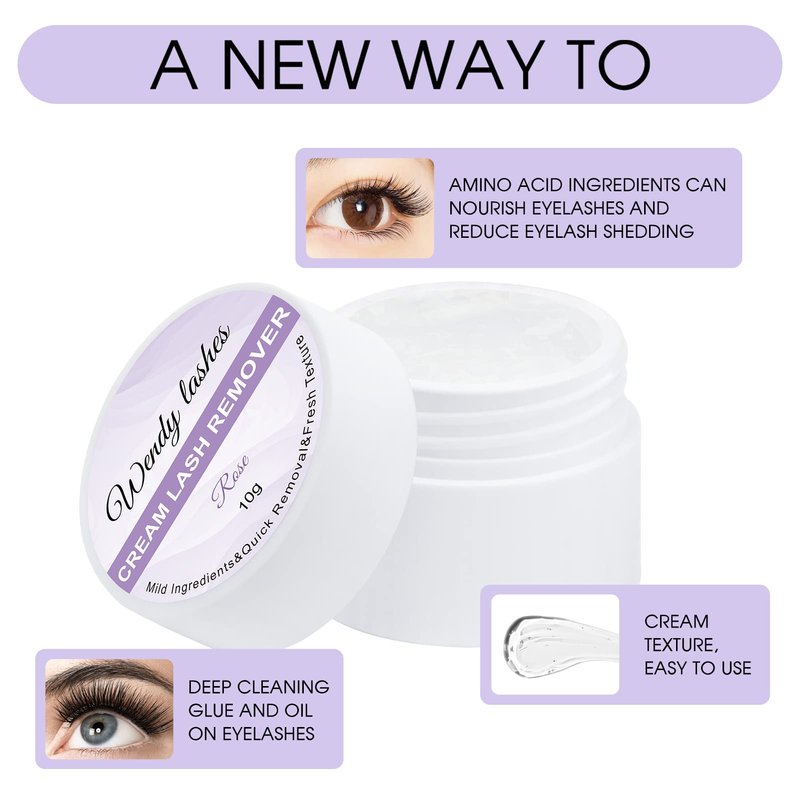 Suitable For Eyelash Extension/Cluster Lashes Glue DUAL-USE: the lash glue remover has a wide range of uses, and adopts a new cleaning formula, which can clean both the eyelash extension glue and the cluster eyelash glue, mild and not irritating, and is suitable for sensitive skin.High Efficiency and Safety: Lash Extension Remover is free of alcohol, soap base, preservatives, spices and essence, rich in amino acids, safe and non irritating. Cluster lash glue remover can penetrate into the interior of eyelashes to clean glue and oil, moisturize and nourish eyelashes, and delay the shedding of eyelashes.Just One Minute: Lash remover for lash extensions can effectively dissolve lash glue in one minute, saving you precious time. You can easily remove the whole eye with a little bit, and also gently remove eye makeup. It is suitable for professional salons and individuals.Cream Texture: Wendy's eyelash remover for lash extensions is made of face cream. The texture of face cream will not be as difficult to control as liquid, easy to hurt eyes, and will not be as greasy as oily gel remover. Very refreshing and easy to clean. Service guarantee: We promise to solve any of your problems online 24 hours a day. If you don't like our products or our products have quality problems, we are willing to give you a full refund and a certain amount of compensation.