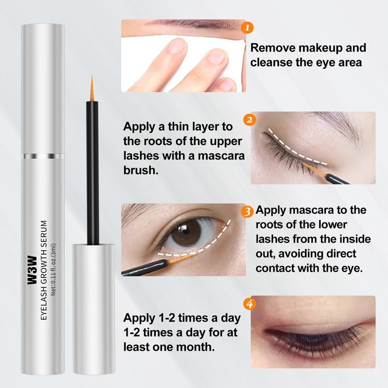 - Easy and safe to use:Simply place a thin line along the base of your upper and lower lash line once a day at nighttime. Apply only at the root area of eyelashes and as though applying eyeliner.Our serum is a safe, worry-free choice for daily use because it is non-irritating, gentle on all skin types