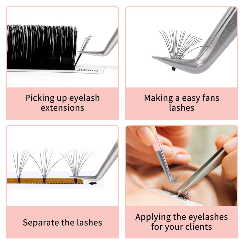 - High-Precision Fiber Tip Tweezers: Lash tweezers for eyelash extensions are perfectly aligned, fiber tip lash tweezers are easy to selecting, making fans and picking up volume lashes. Lash tweezers can pick up the thinnest lashe easily.