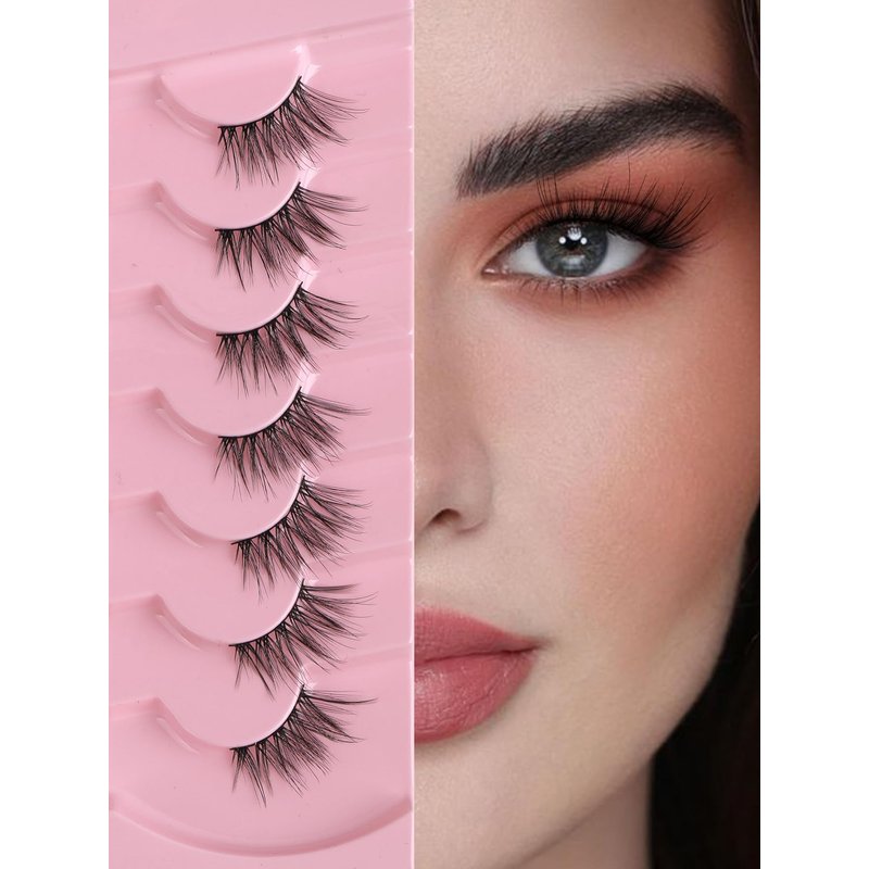 - VEGAN & REUSABLE: 7 pairs false eyelashes pack. The fake eyelashes use ultra-light synthetic fibers, cruelty-free, skin friendly. Bring pretty natural lash extensions look without damaging your own eyelashes, suit for DAY-TO-DAY use, wedding, vacation and so on