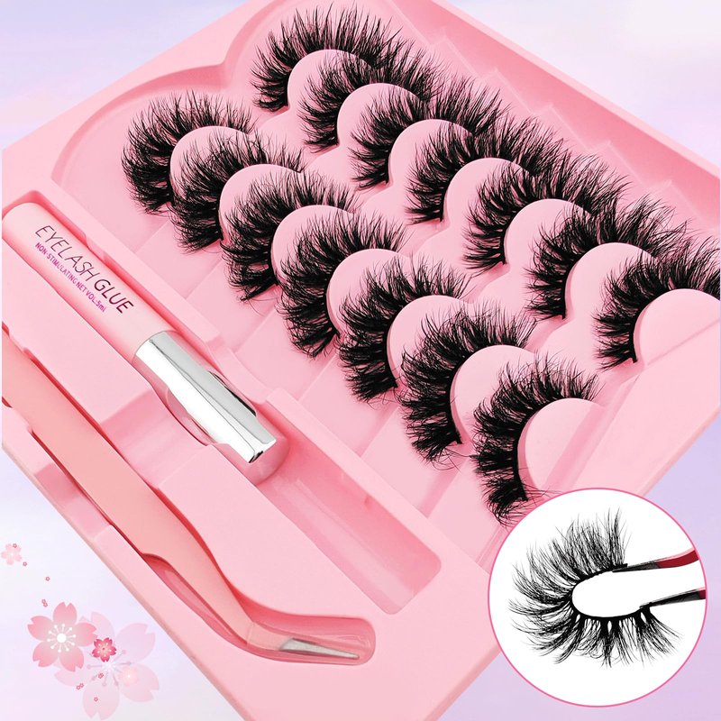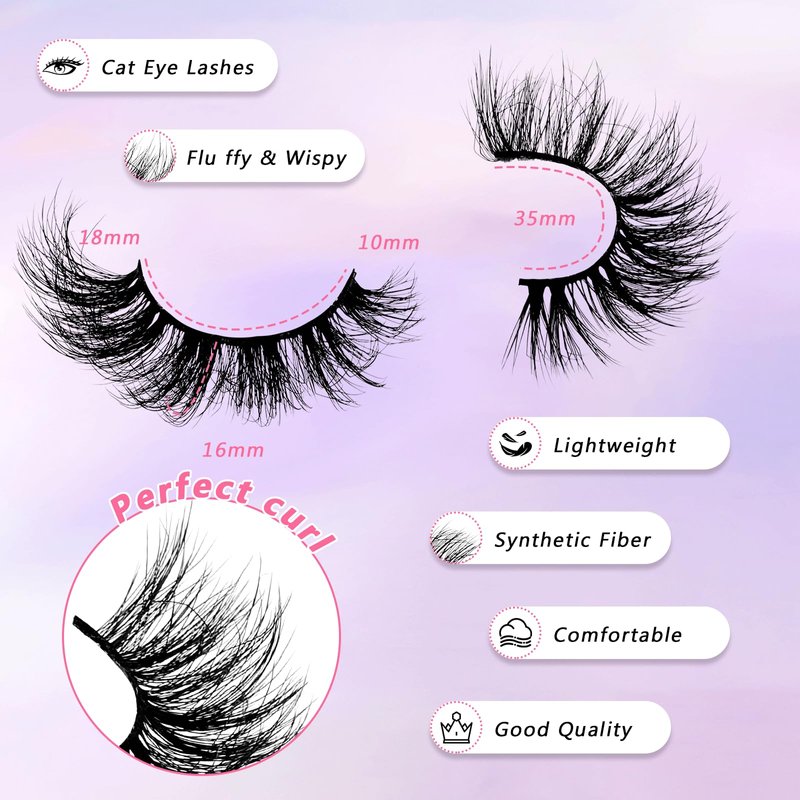 lashes kit with glue and tweezer fox eye lashes flu-ffy 20mm 18mm cat-eye lashes 15mm natural look mink curly volume false eyelashes that look like extensions wispy faux mink false eyelashes fake 7 pairs pack