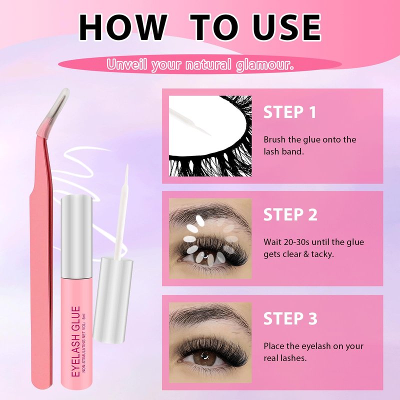 - Easy To Use and Perfect Long Lasting: The glue is made of high-quality materials with safe ingredients and waterproof; the tweezers are designed for clamping eyelashes and feel lightweight. Making these clusters lashes easier to use and providing a longer-lasting hold.