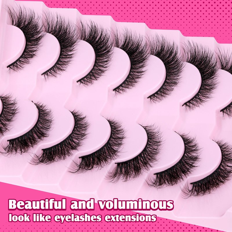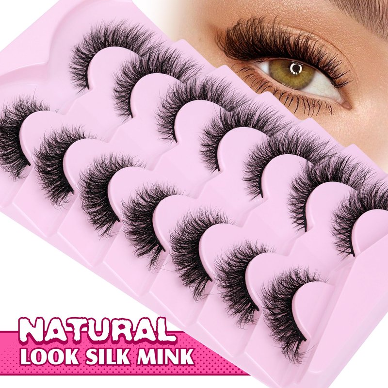 - Natural Look Silk Lashes: 6D fluffy and wispy silky lashes are made of synthetic mink hair. Natural false eyelashes are soft to the touch and friendly to sensitive skin. Layers of fluffy lashes mink will help you easily create a natural look at home. No waiting, cat eye lashes instantly make your eyes look sexy and attractive!