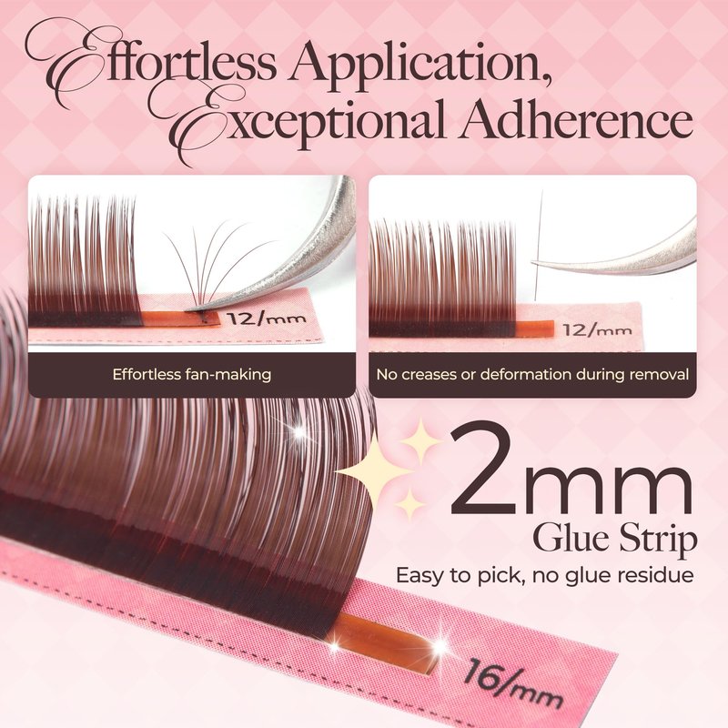 - Complete Specifications: Our lash trays offer a wide range of choices, including lengths from 8-16mm, curls in C/CC/D/J/B/L, thicknesses from 0.02-0.20mm, and two color options—matte black and coffee brown. This ensures uniformity in grafting, reducing the discrepancies between expected and actual effects.