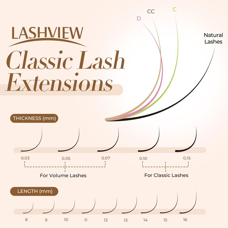 - 【LASHIVIEW EYELASH EXTENSION】We offer you ultra-fine lash extension with 0.05 thickness, contain 12 rows of lashes in a variety of mixed lengths, with 8-16mm mixed lengths. 1 box of our classic lash extensions can serve more than 30 clients due to its mixed lengths.