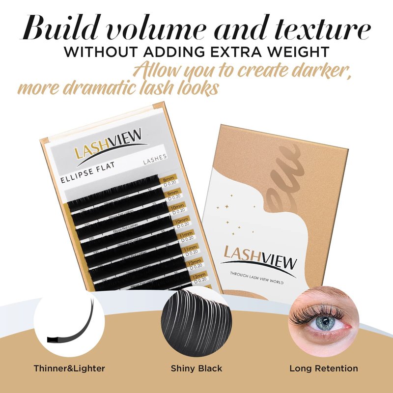 - 【LONGER RETENSION & LIGHTWEIGHT】 Ellipse Flat Lashes is a great alternative of normal classic lash extensions, they are 75% lighter and increased volume without the extra weight. These lashes have been cleverly designed with the purpose of excellent bonding and the ability to give the appearance of a more glamorous, full volume look! Clients who have thinner lashes can have a flat lash applied without any damage to natural lashes.