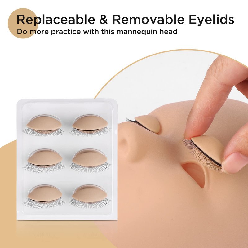 - 【LASHING TRANING & MULTI-USE】 This lash mannequin head with detachable eyelids is designed for lash extension application training, but due to its versatility, you can also use it for cosmetics application practice, face massage practice, and even can use it for display.