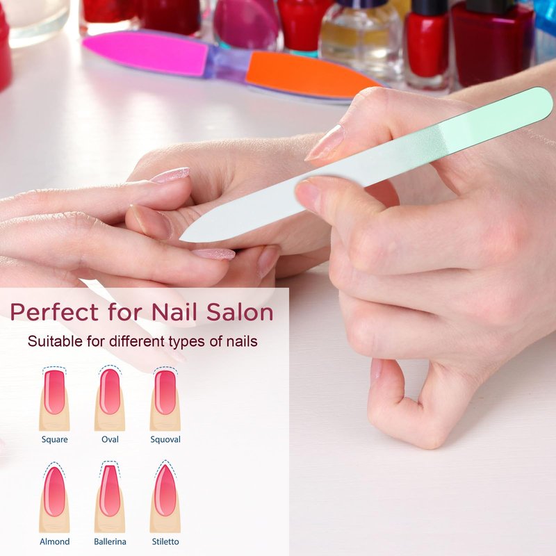 - Double Sided Design: the professional glass nail files for natural nails have the design of double side filing, so that the nail smooth without edges, reduce the chance of nail splitting, chipping, falling off, can still maintain the integrity of the file surface after repeated use