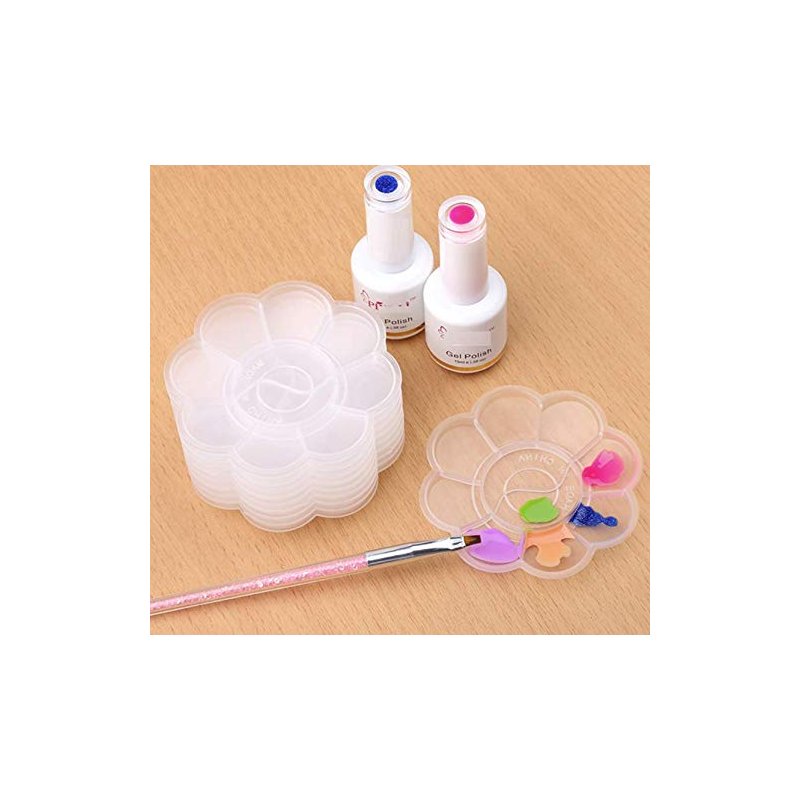 LASSUM 6 Pcs Nail Art Plastic Dappen Dish, Nail Art Polish Color Mixing Palettes Manicure Tool