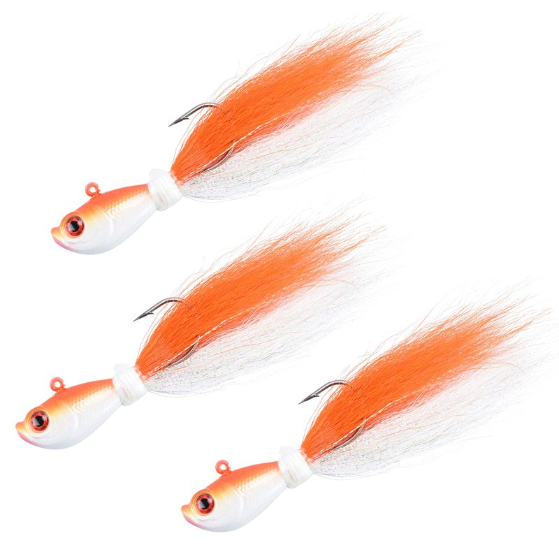 LAST CAST TACKLE 1-2oz Orange & White Bucktail Fishing Lure Jigs - 3 Pack (1.0 Ounce - 3 Pack)
