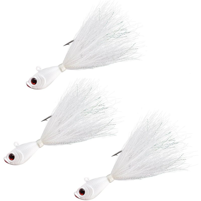 - 3D EYES & HOLOGRAPHIC STRIPS In The Bucktail Hair Help Increase The Jigs Visibility
