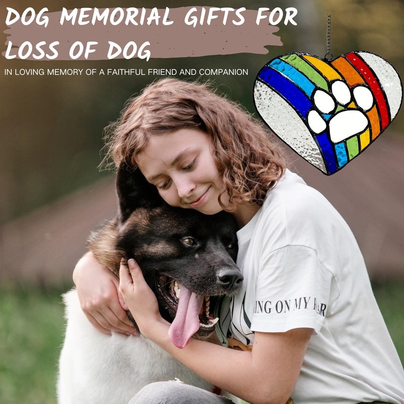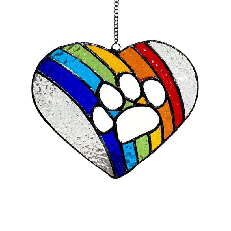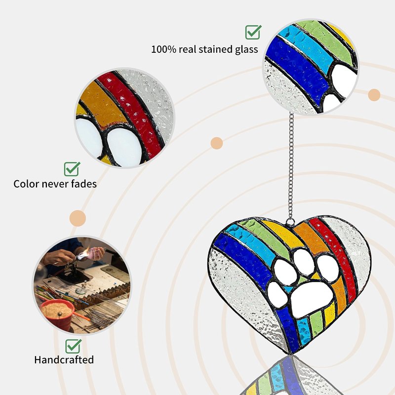LASTINGTAILS Rainbow Bridge Dog Memorial Gifts – Stained Glass Heart Paw Print Suncatcher for Loss of Dog Sympathy Gift, Pet Remembrance and Dog Passing Away Gifts