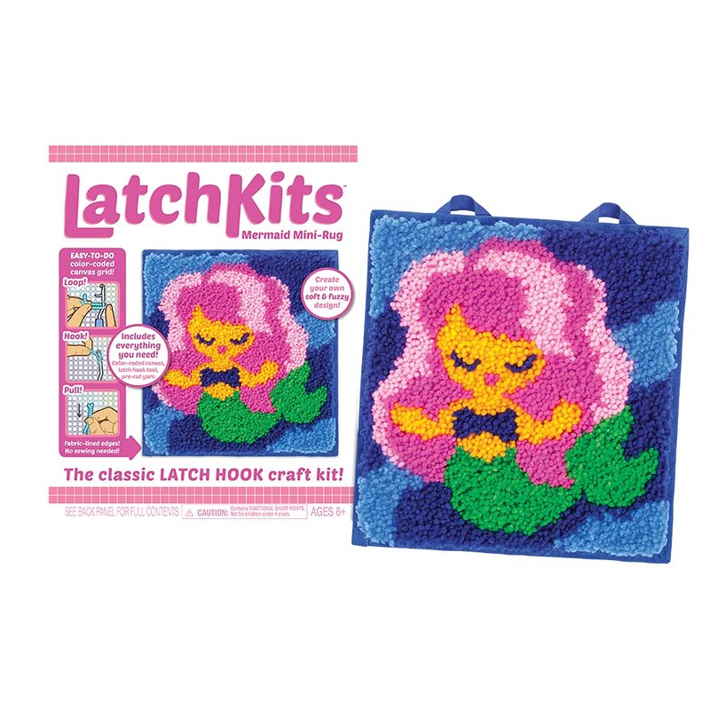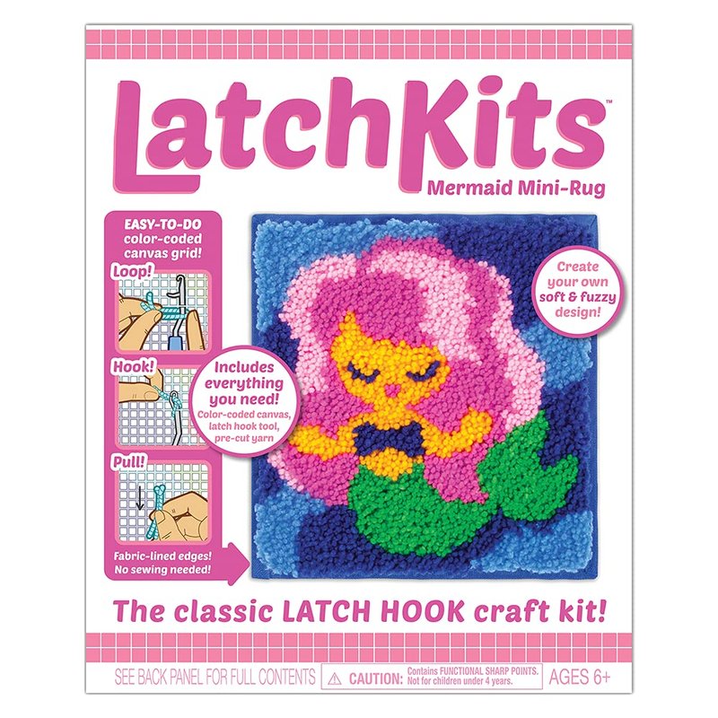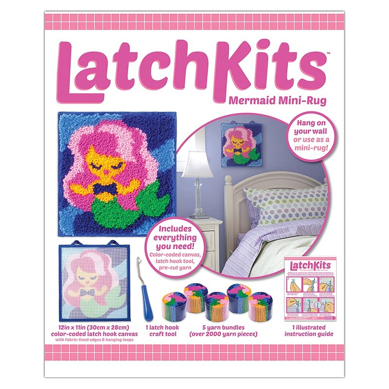 LatchKits Latch Hook Kit for Wall Hangings & Mini-Rugs - Mermaid - Craft Kit with Easy, Color-Coded Canvas, Pre-Cut Yarn & Latch Hook Tool - Perfect DIY Craft for Kids - Ages 6+