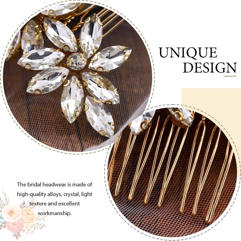 - Wedding hair accessories is made of crystal, rhinestone, and alloy etc. Gold bride hair comb is in unique design and excellent workmanship.