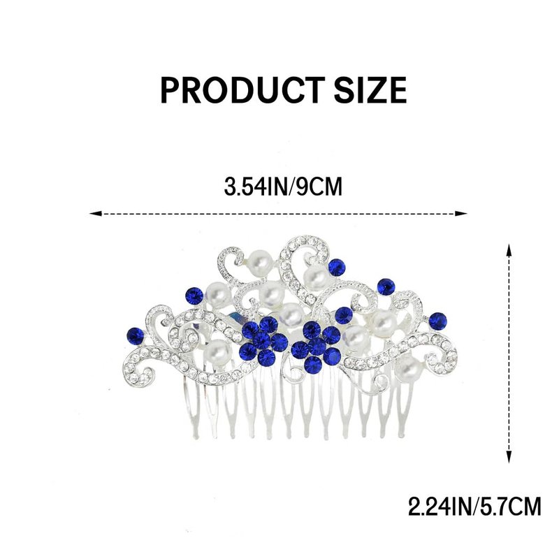 Latious Silver Bride Wedding Hair Comb Rhinestones Bridal Hair Accessories Pearl Hair Piece Decorative Hair Clip for Women and Girls (Blue)