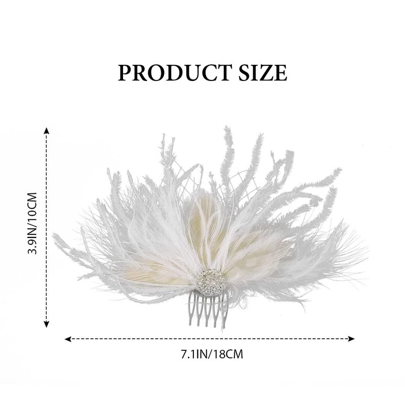 Latious Wedding Bride Flapper Feather Hair Comb White Crystal Bridal 1920s Hair Clip Fascinator Hair Accessories Prom Hair Jewelry for Women and Girls