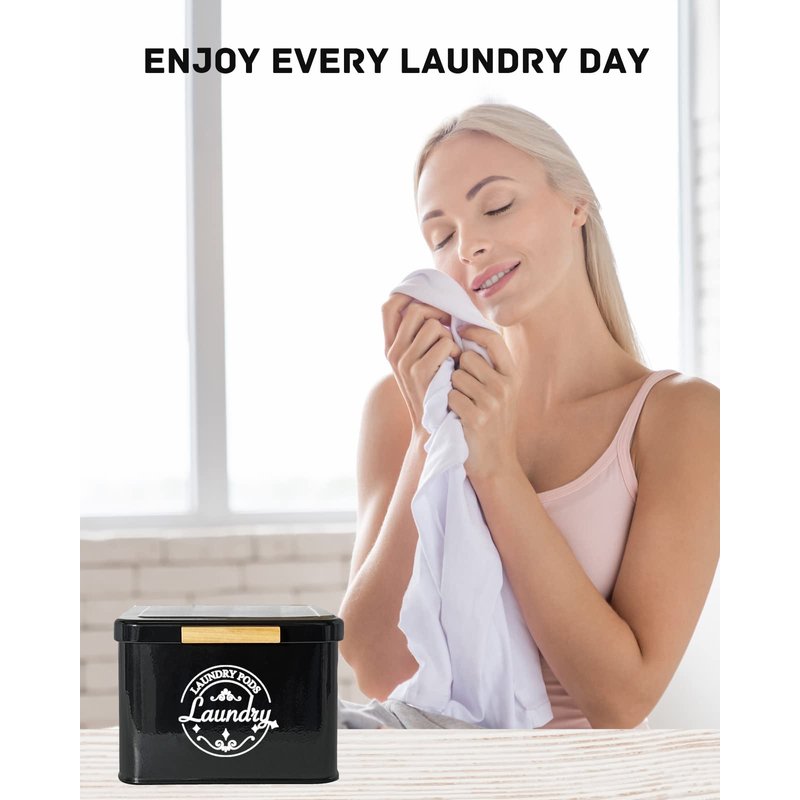 - FARMHOUSE LAUNDRY ROOM DECOR: The exquisite print of the laundry pod storage container adds a warm farmhouse look to the laundry room. "Laundry pods" look clearly and are simple and modern to match the laundry room decor. Store your dryer sheets in this cute room decor. The farmhouse laundry room decor is the perfect complement to your laundry room.