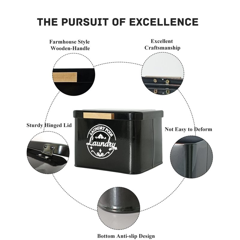 Laundry Pods Container with Hinged Lid. Modern Laundry Room Organization and Storage. Farmhouse Metal Laundry Pods Holder for Laundry Room Decor. Laundry Detergent Container-Black