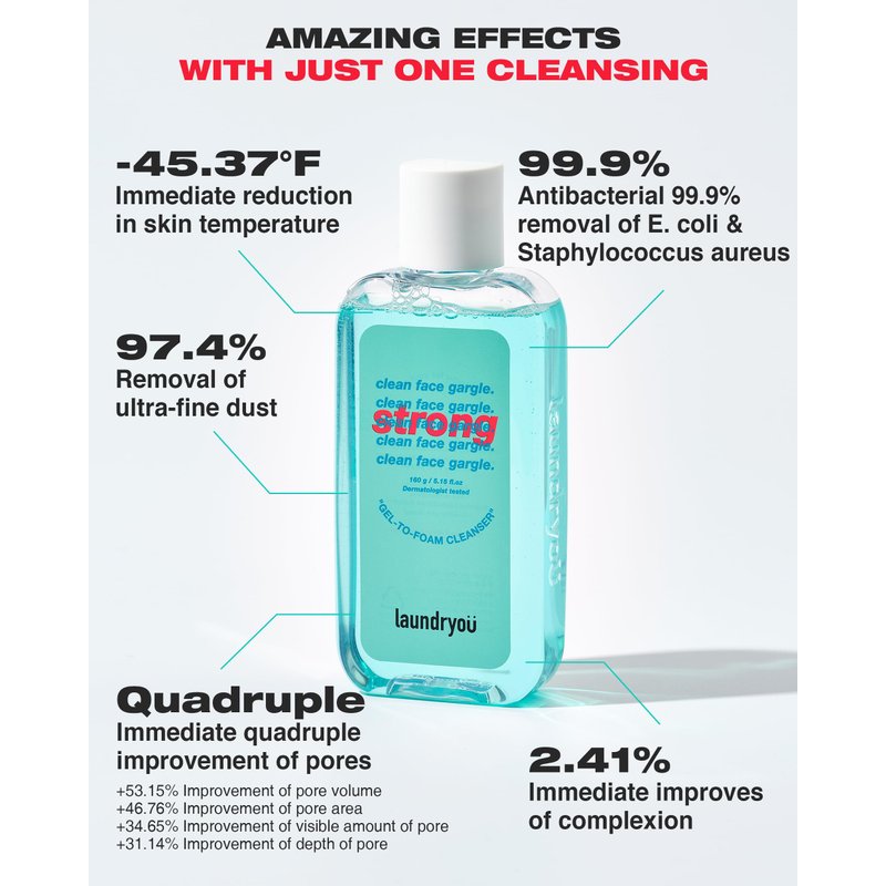 It's the revolution of clean skin! Imagine the deep cleansing and refreshing feeling of a mouthwash but for the face. With just one use, the Clean Face Foam Cleanser Strong washes away makeup and impurities while flushing out fine dust particles inside the pores for a total clean finish.