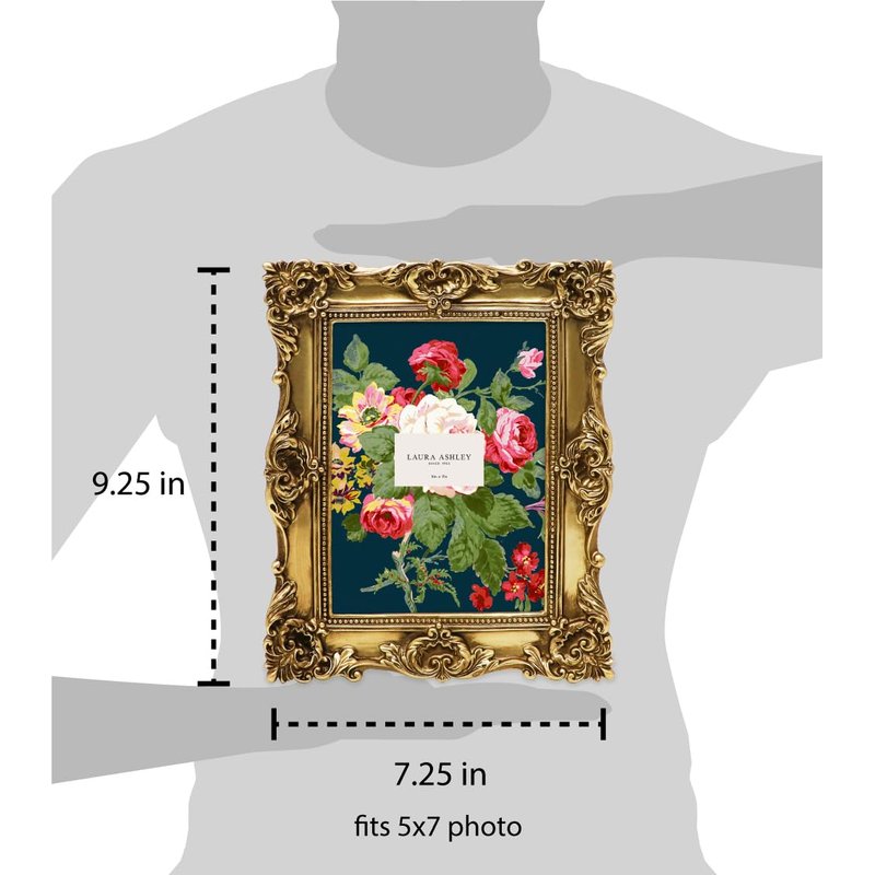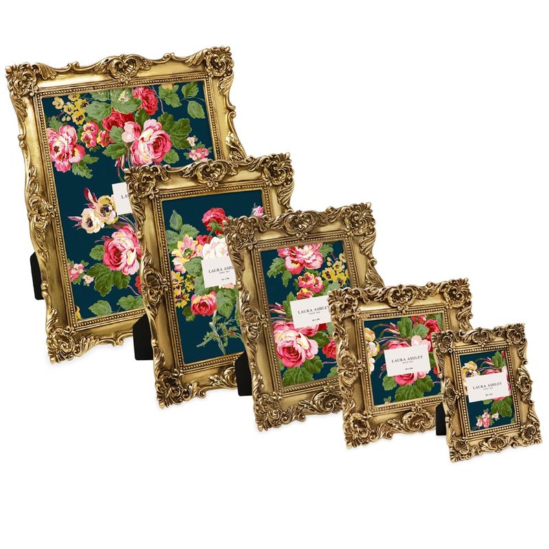 - BRING PHOTOS TO LIFE: Frames aren’t just for displaying your photographs-- they serve as home decor too! The elegant, molded photo frame surrounds your precious memories in a pretty frame that also serves as room decor. This Laura Ashley frame draws attention to your favorite photos while adding glamour, finesse, and literal and figurative color to any room. The beautiful floral design lining this photo frame wrap your picture in a truly resplendent fashion, bringing extra charm to your home