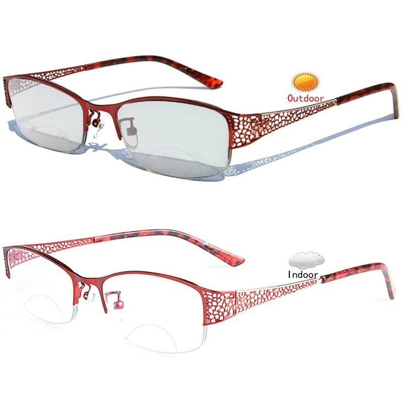 laureles Fashion Photochromic Bifocal Reading Glasses Women's Sun Glasses Transition Metal Frame Red Presbyopia Female (Red, 0.00/+1.75 Magnification)