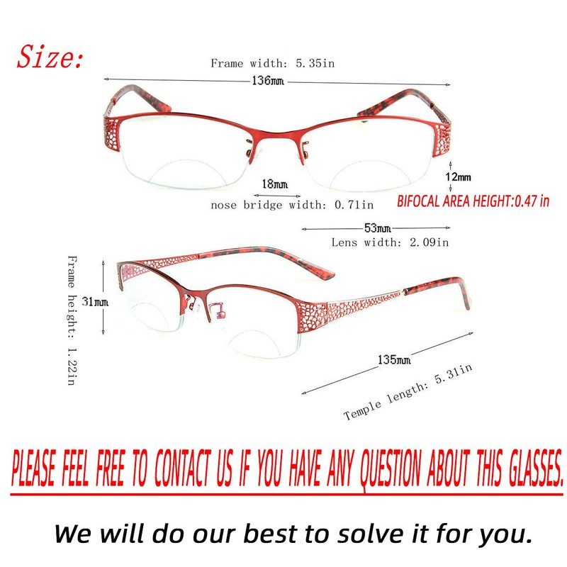 - BIFOCAL READING GALSSES: Regular clear lens on top with reading area at the bottom perfect for outdoor reading and distance viewing. (BIFOCAL AREA HEIGHT: ABOUT 0.47 in)