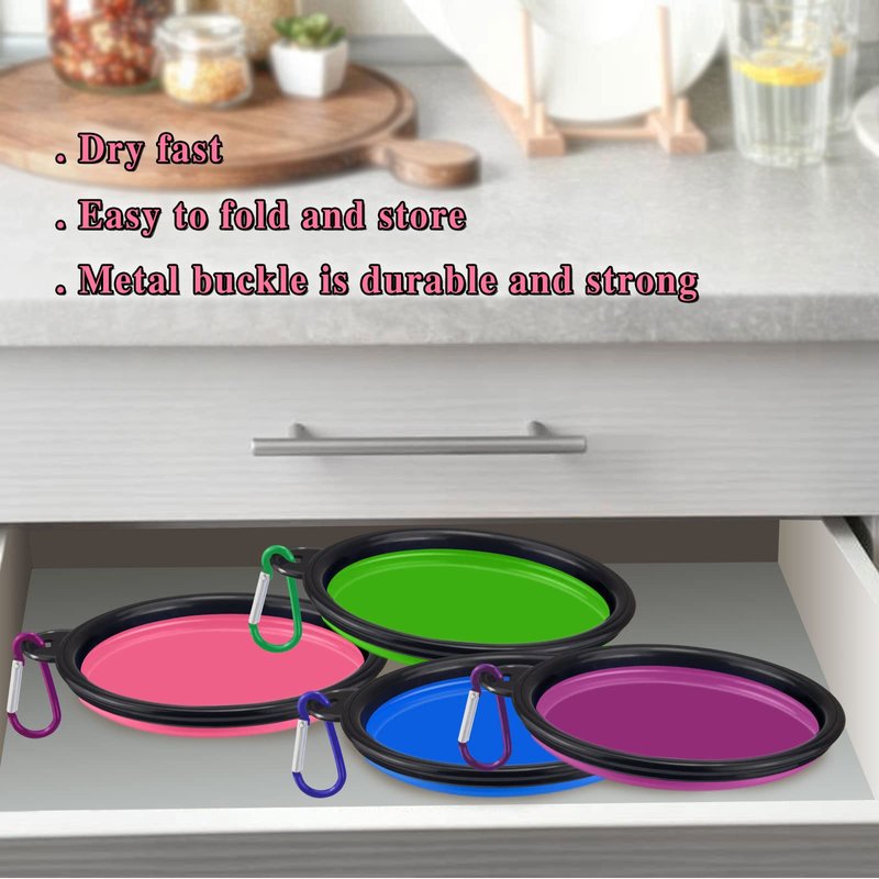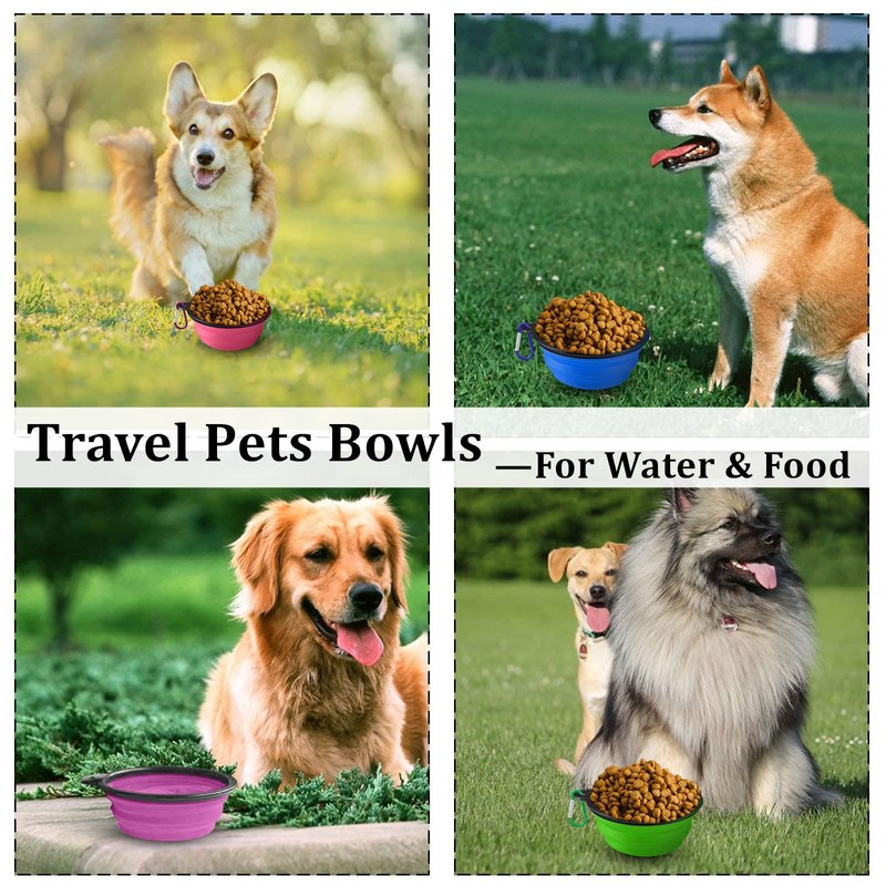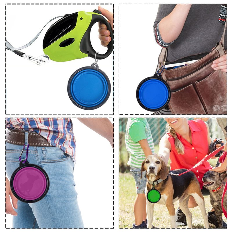 - 🐕Travel Dog Bowl with Carabiner: Each silicone travel Pet dog bowl comes with carabiner. It is easily hanging on the belt, bag, dog travel crate, dog leash, backpack, purse, or collapse flat for your pocket, stroller, glove box and more! Simple to feed or water your dog on the go. With the carabiner avoiding you lost the dog bowl also easy to carry.