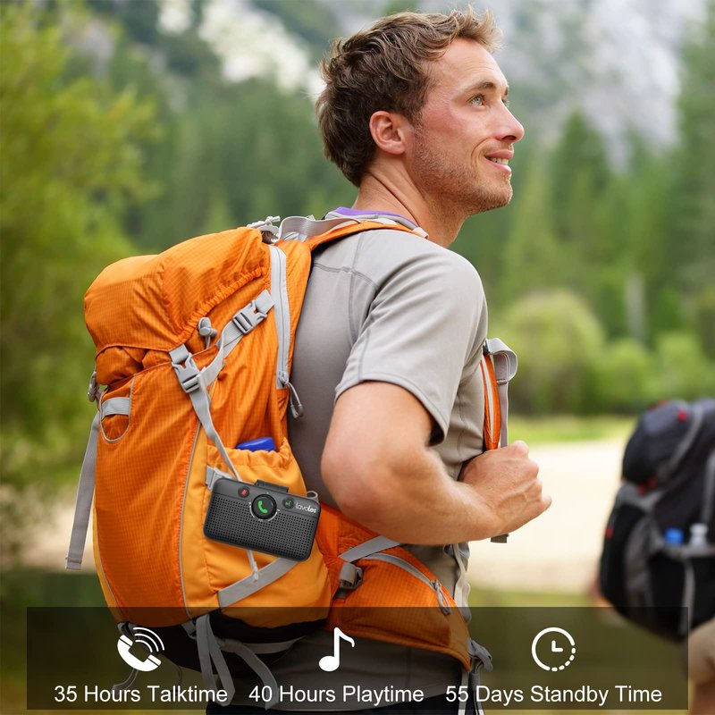 - ★[East to Use, Long Working time] Just clip it to your car sun visor with the magnetic back clip and connect it with your phone via Bluetooth. The latest Bluetooth 5.3+EDR technology provides lower power consumption and wider compatibility. 35 Hours Talktime,35 Hours Talktime,40 Hours Music time, 55 Days Standby Time. Mainly used for handsfree talking for safe driving, but also can serve as a speaker on the conference table or a portable music player.