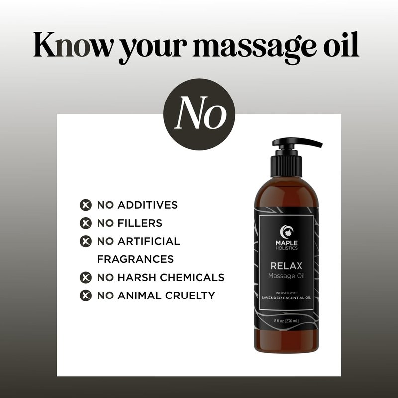 - Maple Holistics Quality - Our cruelty-free quality tested massage oil with carefully chosen ingredients work harmoniously together for a relaxing muscle massage that hydrates and nourishes your skin