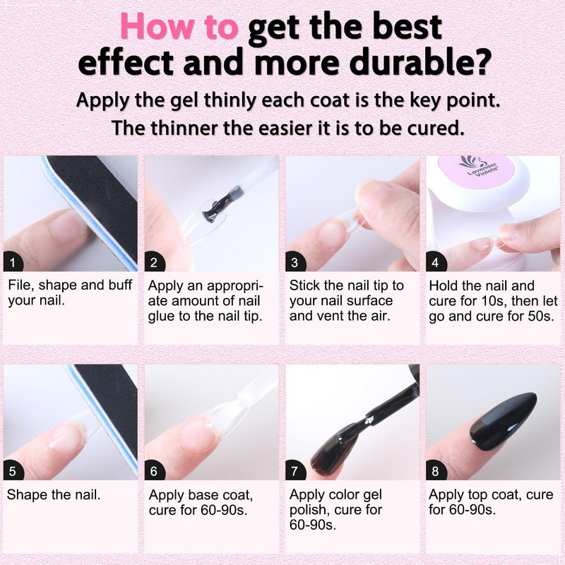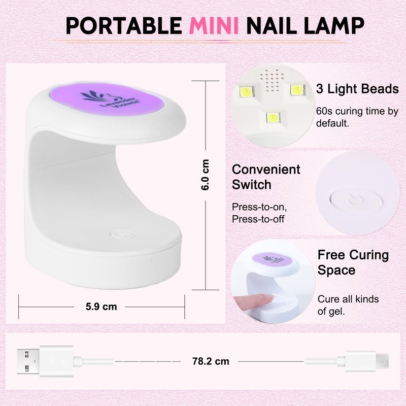 - Smart LED Nail Lamp: The portable mini-LED nail lamp in this gel nail kit cures all types of nail gel products, including base coat, top coat, gel builder, and nail extension gel. It’s compatible with all brands, making it an essential tool in your gel nail kit with U V light.