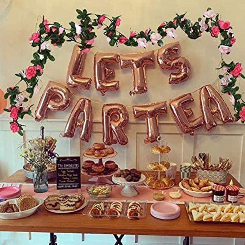LaVenty 12 PCS LET'S PAR TEA Balloons Tea Party Birthday Banner Tea Party Decorations Lets Par-Tea Party Decor Par Tea Baby Shower Par Tea First Birthday Decoration Flower Garland(180inch)