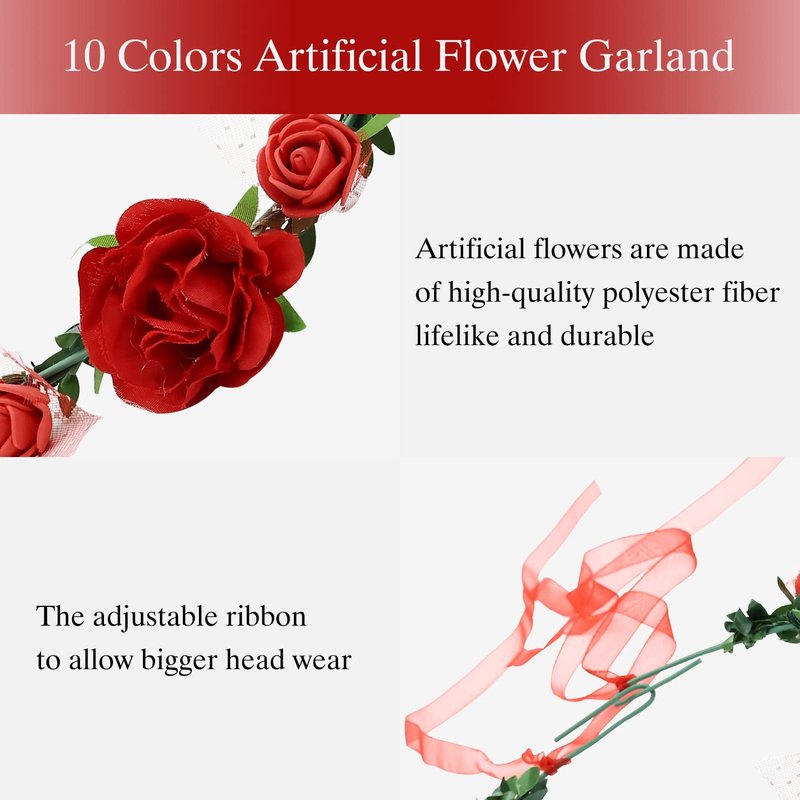 - [10 Pack Colors]: There are 10 pack fairy assorted colorful flowers crown garlands, white, pink, red, purple, yellow, blue sunflower and rose flowers, allow you to match them with the different outfit or occasion, The important thing, the price for 10 pieces flower wreath headband is very affordable, absolutely saving money for you.