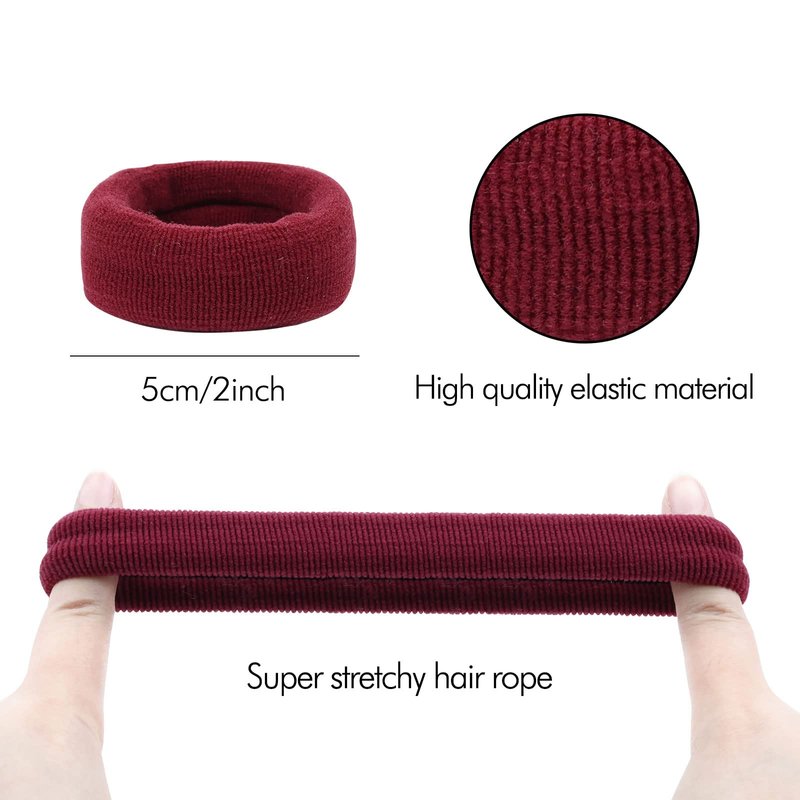 - [Wide & Thick Hair Ties]: The wide elastic terry cloth hair tie is super wide, they are completely snag-free, the soft wide knit design makes it no crease and painless after being used a long time on your hair. the assorted colors also give you more choices to match your outfit or for different occasions.
