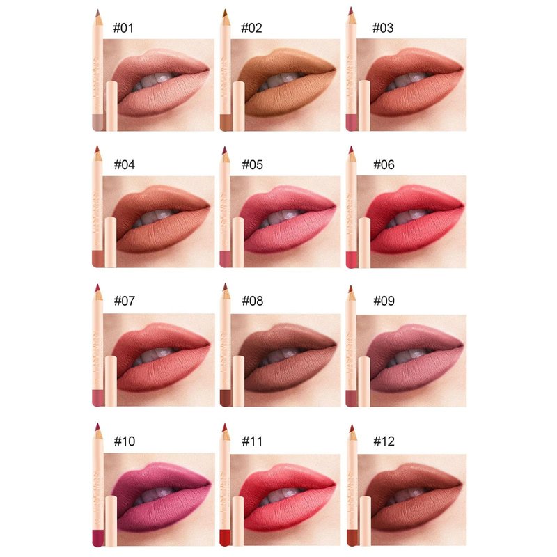 Layhou 12 Colors Matte Lipstick Long-lasting Lip Liner Pen Set Waterproof Non-stick Lip Liner Pencil 1.2g*12 Easy to Apply
