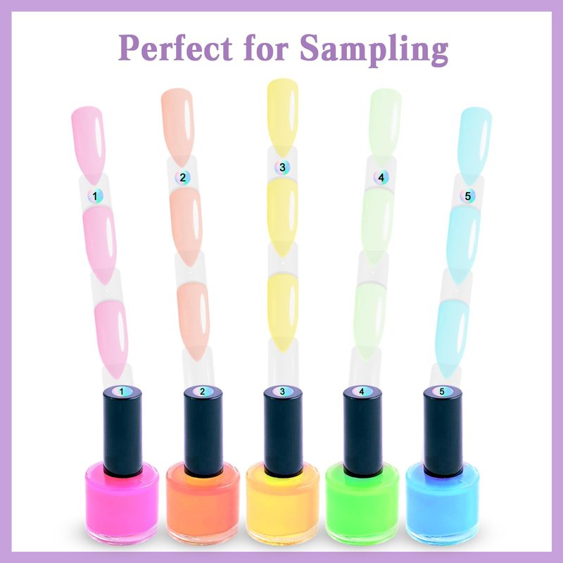 - Premium Quality: These nail sample sticks are made of sturdy transparent plastic material that ensures the testing product shows its original color. A smooth surface makes it easy to apply and hold the color without chipping or cracking.