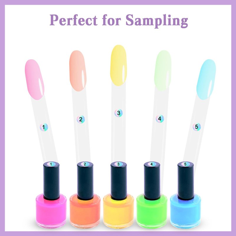 - Premium Quality: These nail sample sticks are made of sturdy transparent plastic material that ensures the testing product shows its original color. A smooth surface makes it easy to apply and hold the color without chipping or cracking.