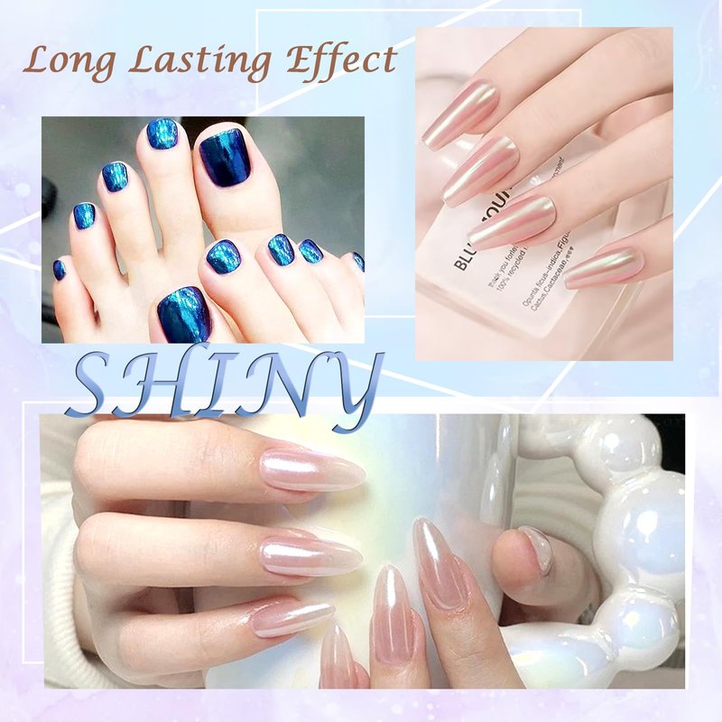 - Great Aurora Effect: Laza white chrome nail powder is a kind of pearlescent mica powder that can be used to make shinning pearl effect on your nail art. This chrome powder for gel nails is lightweight and smooth, which gives you glazed donut nails and easy-hand experience.