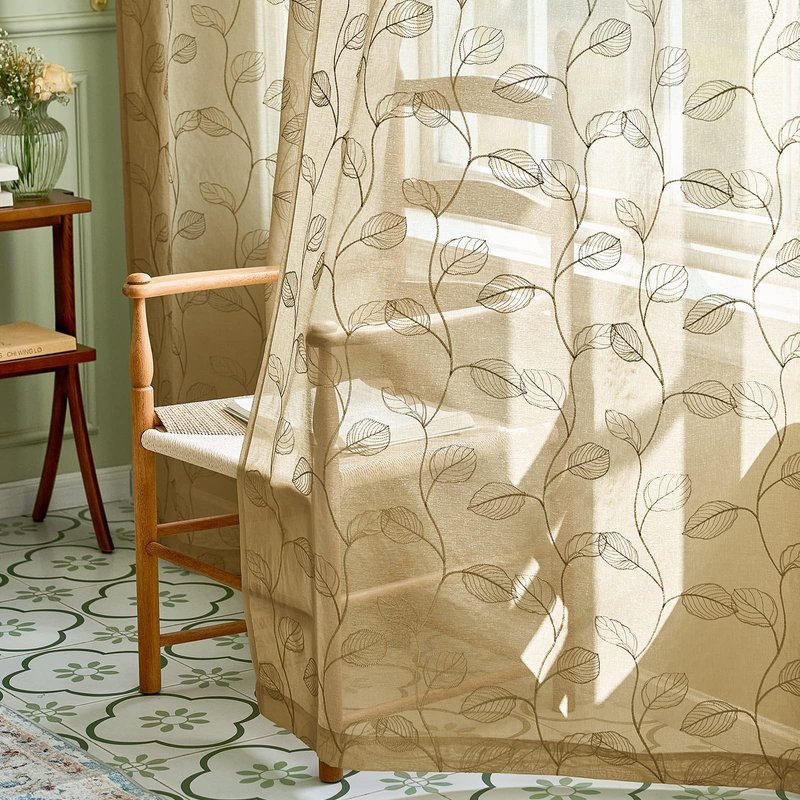 - Exquisite Workmanship: All edges are carefully stitched without uneven hems. 2'' rod pocket suits most curtain rods and makes the panels drape perfectly over your window. Cute embroidered leaves on sheer curtains creat a refreshing, natural and elegant sense to your room, bringing unique aesthetics to your room and making it the best home decor item!