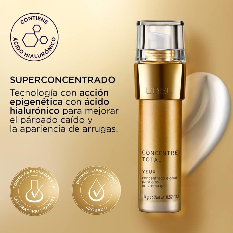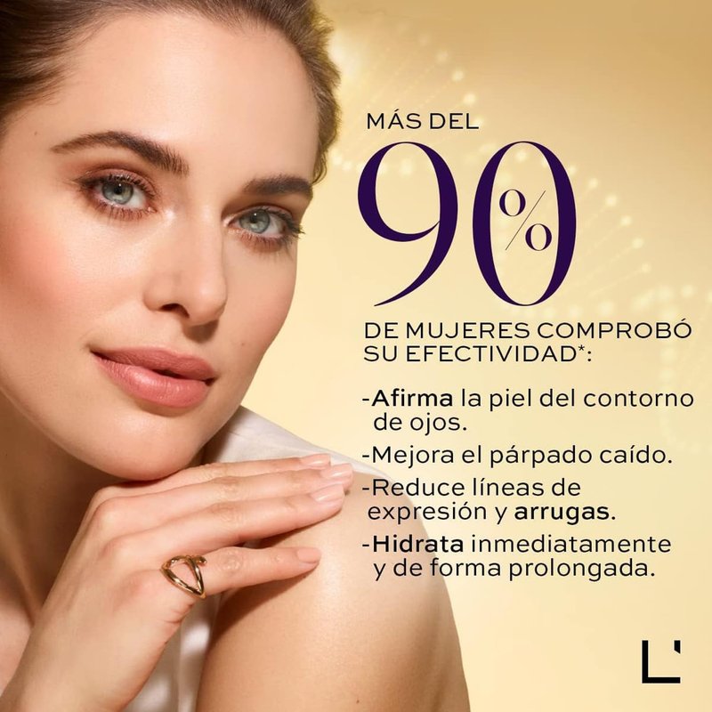 - Firms the skin around the eyes, improves drooping eyelids, reduces expression lines and wrinkles, reduces bags and dark circles. In addition, it has a technology with epigenetic action with hyaluronic acid to improve drooping eyelids and the appearance of wrinkles.