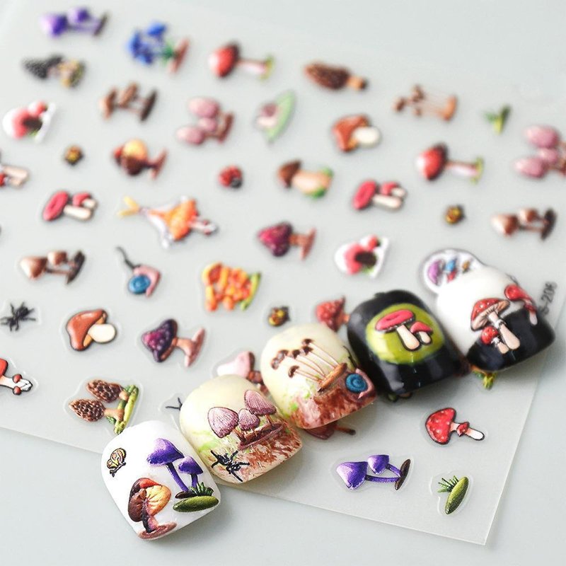Embossed Mushroom Snail Nail Art Stickers 5D Self-Adhesive Nail Decals Nail Art Supplies for Women Girls .