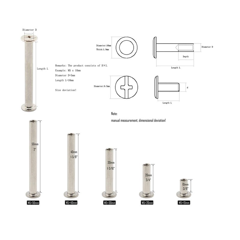 LBY 50-Set Phillips Chicago Screws Binding Screw Post M5 x 10/20 /30/40 /50mm Book Screws