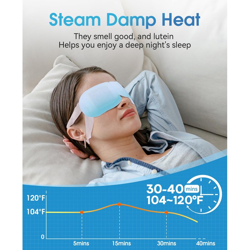 - 【The Longest Working Time Steam Eye Mask】 Self heating steam eye mask working time is at about 30-40 minutes depending on the environment. Our heated eye mask can keep the temperature at the range of 104-122℉ for a longer time than any other self-heating steam eye masks on the market. Steam heat eye masks are light weighted each one of the spa eye mask bulk is self-packing, sealed well and easy to carry.