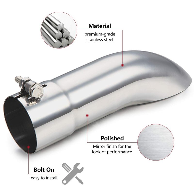 - 【SIZE】 2.5 inch inlet, 9 inch overall length, turn down exhaust tip