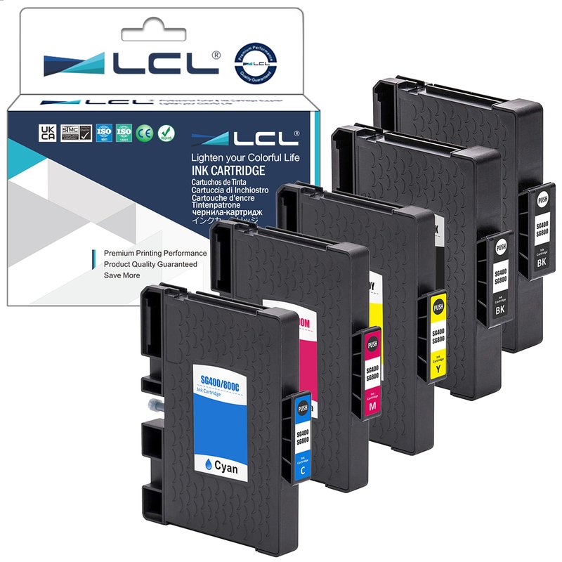 LCL Compatible Sublimation Ink Replacement for SG400 SG800 SG400NA/EU SG800NA Sublimation Printer RICOH SG3110 SG2100N SG3100 SG3100SF SG3100SNW SG3110DNW SG3110DN SG3110SFNW SG3120SF (5-Pack 2KCMY)