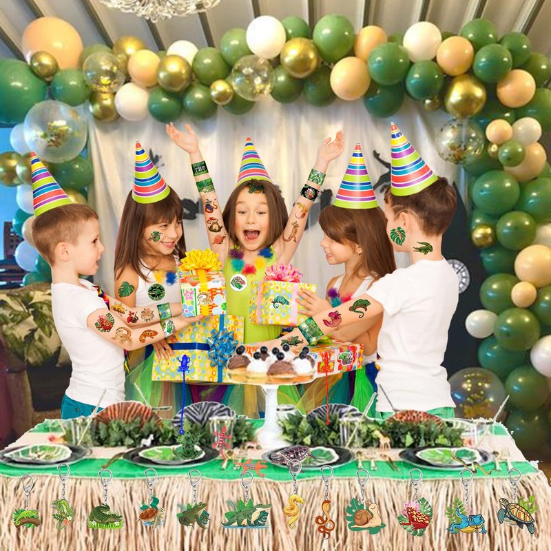Lcnjscgo Reptile Party Favors Reptile Birthday Party Supplies Decorations Plastic Reptile Toys Vinyl Stretchy Sticky Toys Reptile Slap Bracelets Tattoos Badges Stickers Acrylic Keychain