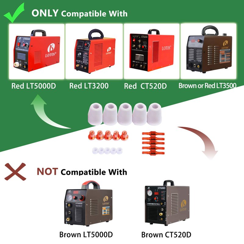 LCON90 90 pcs Lotos Plasma Cutter Consumables Nozzle Electrode Cup and Ring for 50A Lotos Plasma Cutters Cut50D, LT5000D, CT520D, BLCT520D
