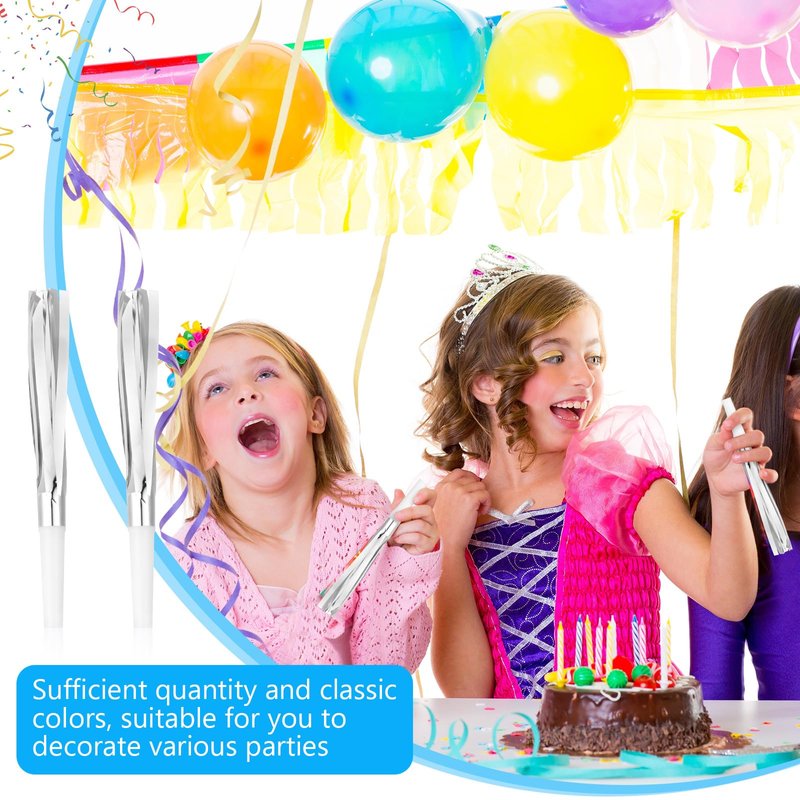 - Fun Party Favors: Set of 48 metallic fringed noise makers in gold white and silver white colors, perfect for celebrations like New Year's Eve, birthdays, and baby showers.