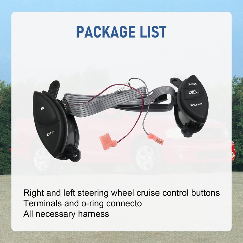 - ✦ 【Package includes】The kit includes left and right steering wheel controls. (right and left steering wheel cruise control buttons, all necessary harness, terminals and o-ring connector)