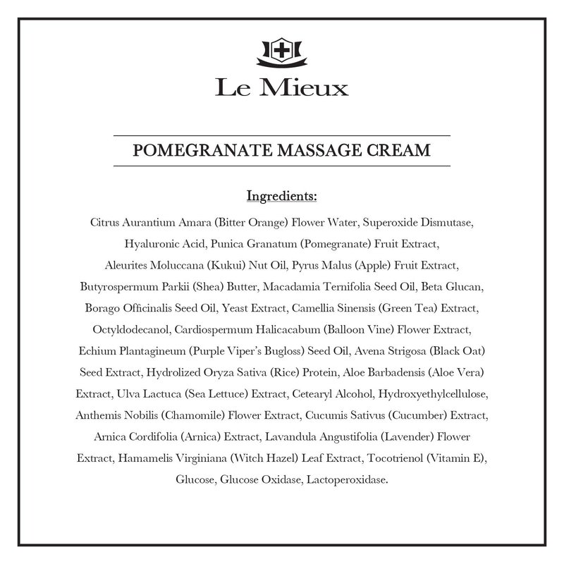 Le Mieux Pomegranate Massage Cream - Aromatic Moisturizing Neck & Face Massage Cream with Algae, Hyaluronic Acid & Botanical Oils, No Parabens or Sulfates (2 oz / 60 ml)